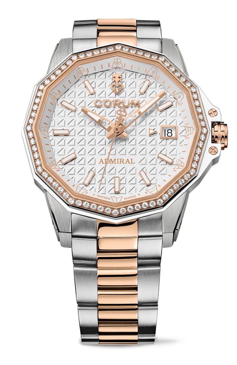 CORUM崑崙錶新發表Admiral 38海軍上將女皇系列38自動錶,品牌採用甜美柔和的配色,為經典海軍上將系列錶款添入一點甜蜜感。品牌認為剛柔並濟是現代女性所呈現的樣貌,所以特別以海軍上將系列為基礎,挹注屬於女性的婉約氣質,甚至將新款名稱定調為女皇系列。