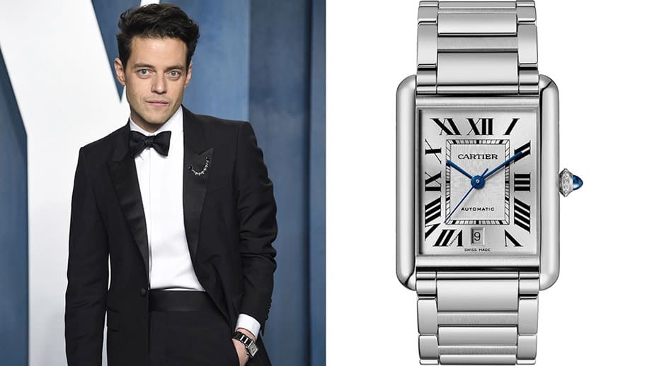 曾得過第91屆奧斯卡獎最佳男主角的雷米馬利克在今年選擇佩戴卡地亞經典的Tank出席盛會,他的西裝打上「啾啾」配上老牌Tank非常合適。Source:Robbreport