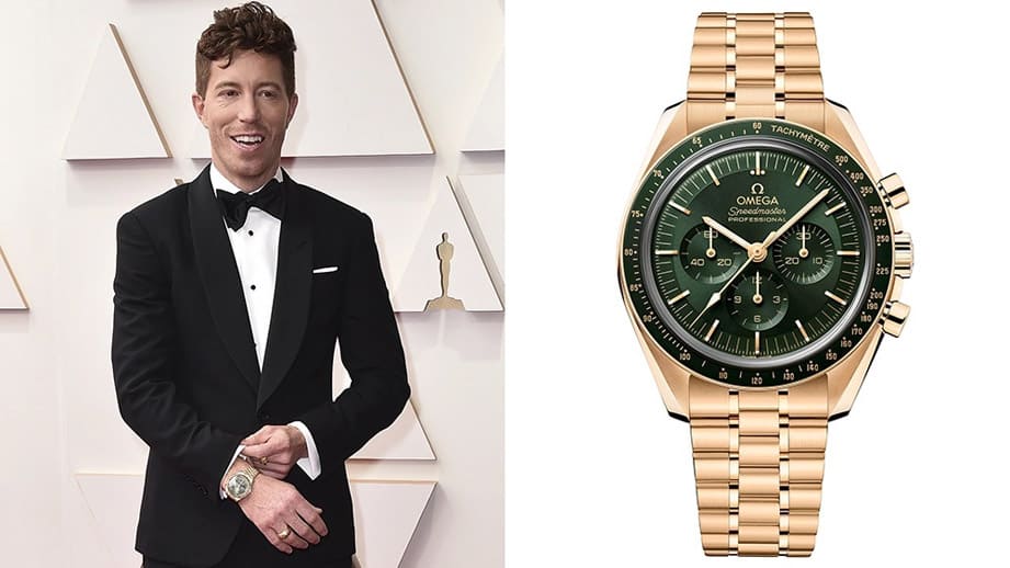 美國三屆冬奧會單板滑雪男子U型池金牌得主Shaun White剛在2022年參加完北京冬奧會後宣佈退休,他這次受邀參加奧斯卡獎,手上戴的應該是廠商提供的最新款綠金超霸登月錶。Source:Robbreport