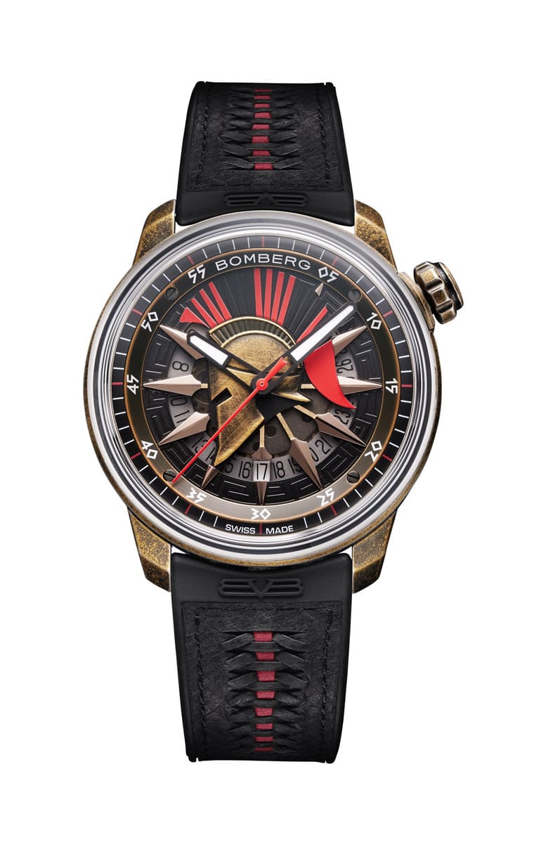 BOMBERG炸彈錶的一大特色在於品牌喜歡將世界各地具代表性的文化歷史推廣給世人,因此過去品牌曾將墨西哥亡靈節、阿茲提克文化的羽蛇神、瑪雅面具等各地的文化元素融入手錶細節。2022年炸彈錶再度以希臘的斯巴達戰士為題,創作出新錶BB-01 Spartan Red,手錶以著名的溫泉關戰役為靈感,展現出驍勇善戰的戰士文化。