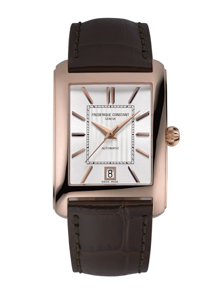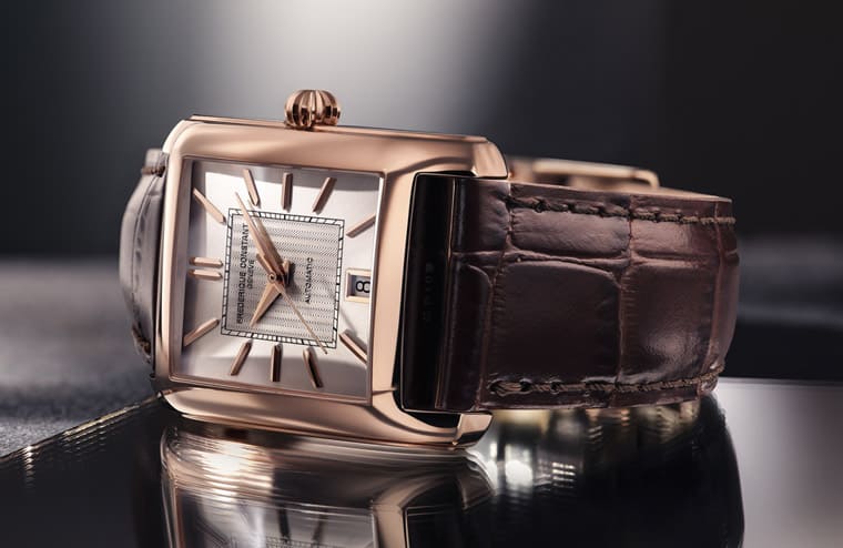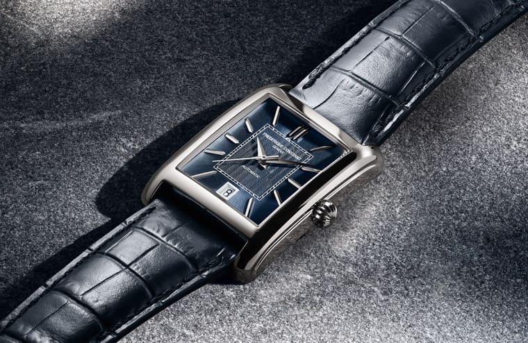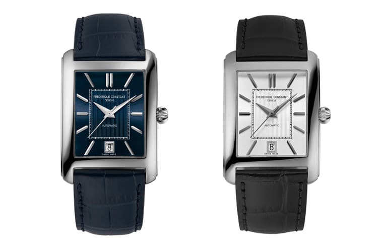 Frédérique Constant康斯登Carrée百年典雅系列推出三款新作,分別為不鏽鋼錶殼、銀色面盤搭配黑色皮帶,不鏽鋼錶殼、藍色面盤搭配藍色皮帶,以及鍍玫瑰金錶殼銀色面盤搭配棕色皮帶等設計,其典雅獨特的矩形外觀,帶人回想起20世紀初期的古董錶美學風格。