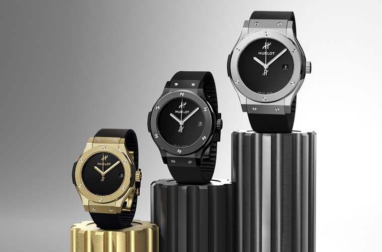 鈦金屬或黑色陶瓷或18K黃金材質/HUB1110自動上錬機芯/時、分、秒、日期顯示/藍寶石水晶鏡面、透明底蓋/防水50米/錶徑38mm/參考價:NT$ 246,000(鈦金屬)、NT$ 265,000(黑色陶瓷)、NT$ 638,000(黃金)