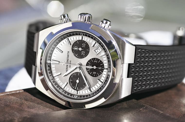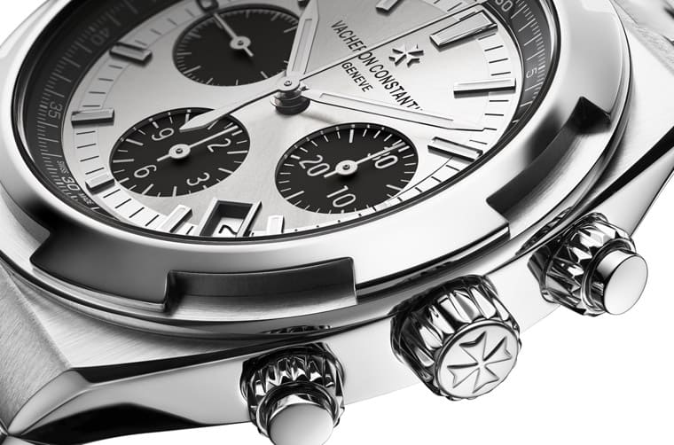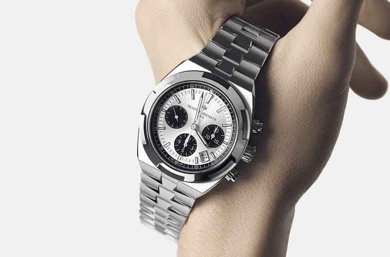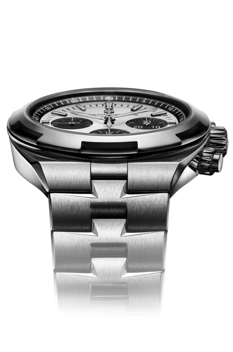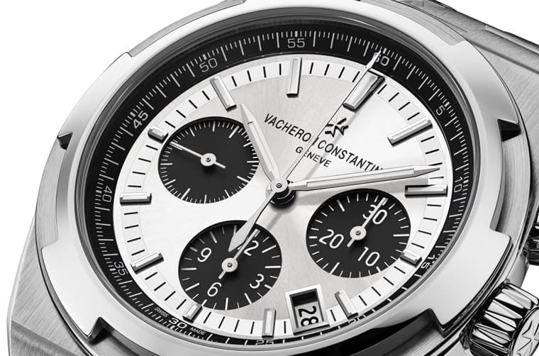 ▲江詩丹頓推出全新Overseas計時碼錶,錶款採用不鏽鋼材質,並採用經典賽車錶常見的銀白色調面盤搭黑色計時盤,也就是俗稱的熊貓面配色。