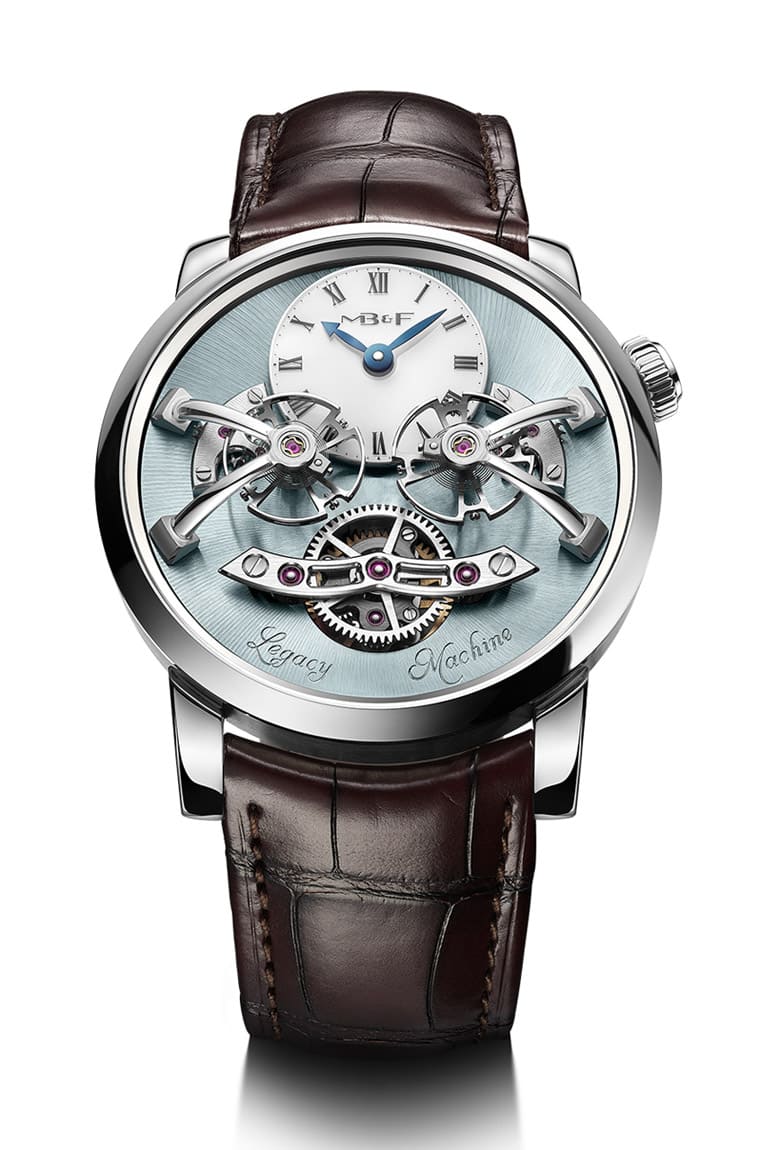 ▲Legacy Machine No.2於2023年出現最新版本,MB&F別開生面採用鈀金製作錶殼。