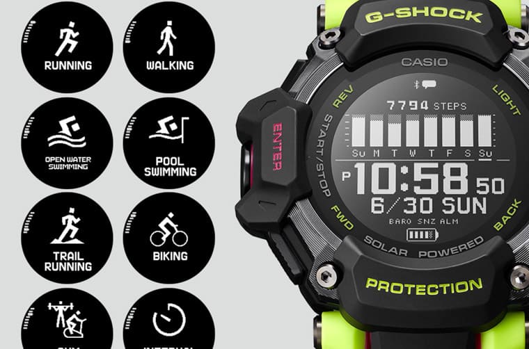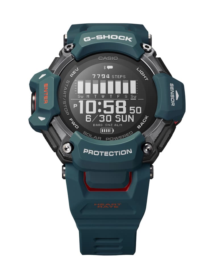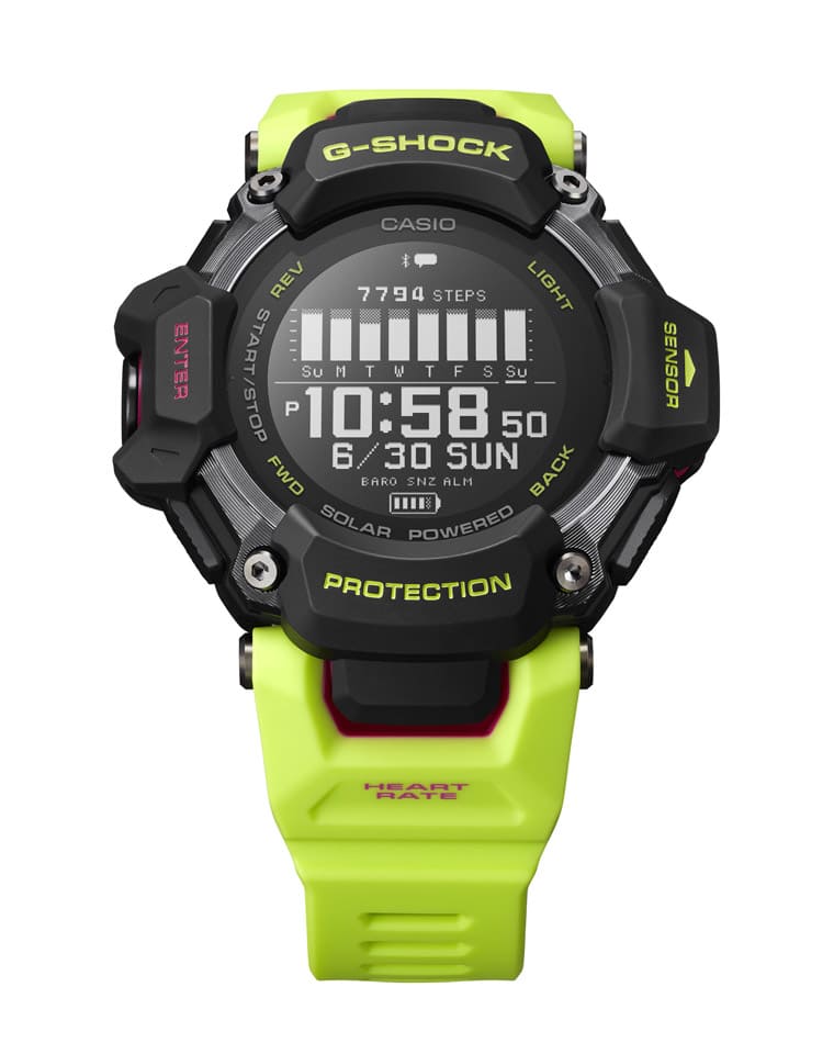 運動功能方面包含跑步、步行、越野跑步、自行車、開放水域游泳、泳池游泳、健身房運動與間歇訓練等8項選擇,GBD-H2000新增身心健康管理功能,能夠追蹤睡眠、血氧、壓力、呼吸等資訊。新一代錶款更與POLAR®合作,其以心率為核心的訓練分析而聞名,採用全新演算法分析訓練成效,所有佩戴錶款活動後收集到的資料(如跑步指數中的最大攝氧量VO2 max、心肺負荷、能量消耗)會利用POLAR®資料庫進行分析,再透過易讀的格式顯示目前的運動表現和身體狀況,G-SHOCK和POLAR®並攜手改進專屬App的實用性,讓佩戴者更有效率地掌握身體動態資訊。
