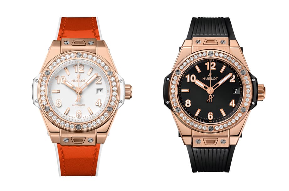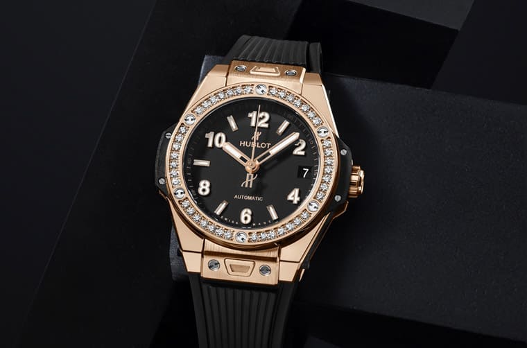 皇金材質/HUB1710自動上鍊機芯/時、分、秒、日期顯示/款款鑲鑽36顆,約重0.76克拉/藍寶石水晶鏡面/防水100米/錶徑39mm/參考價:NT$ 782,000