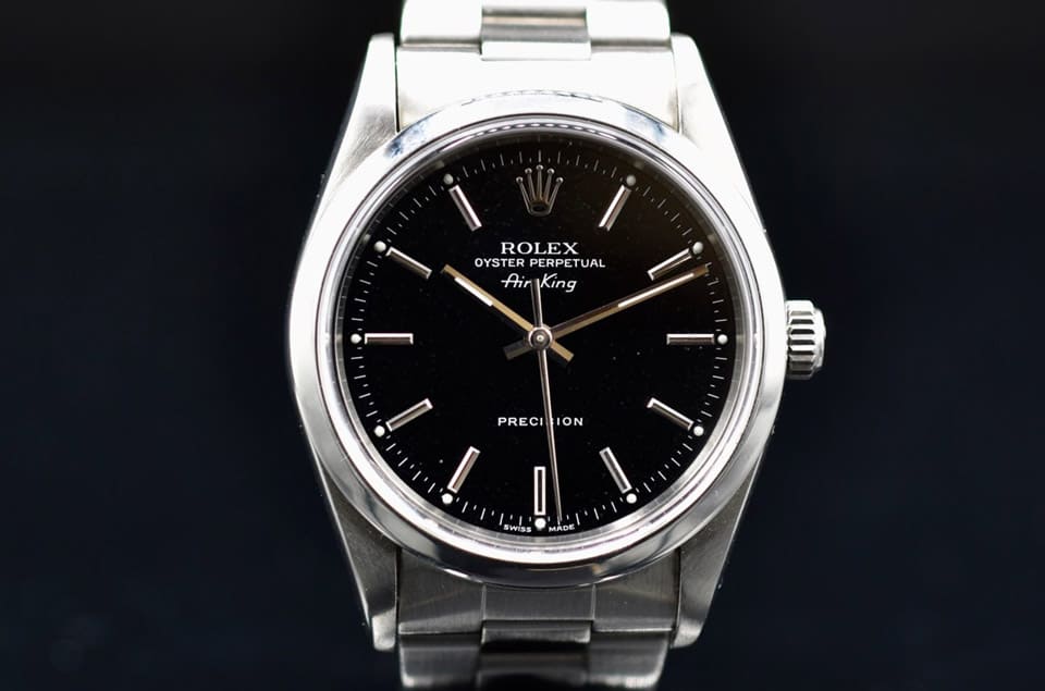 這時期的Air-King還處於34mm錶殼時期,而它的造型則是在2016年116900登場前Air-King比較廣為人知的樣子,這時候的空霸長得有點像Oyster Perpetual,都是沒日期的大三針,不過手錶在12點方向印有”Air-King”字樣讓人有跡可循它和OP的分別,這款錶目前在二級市場的價格高點大概在20萬台幣左右,隨著錶況不同想找到10萬出頭的也不是不可能。