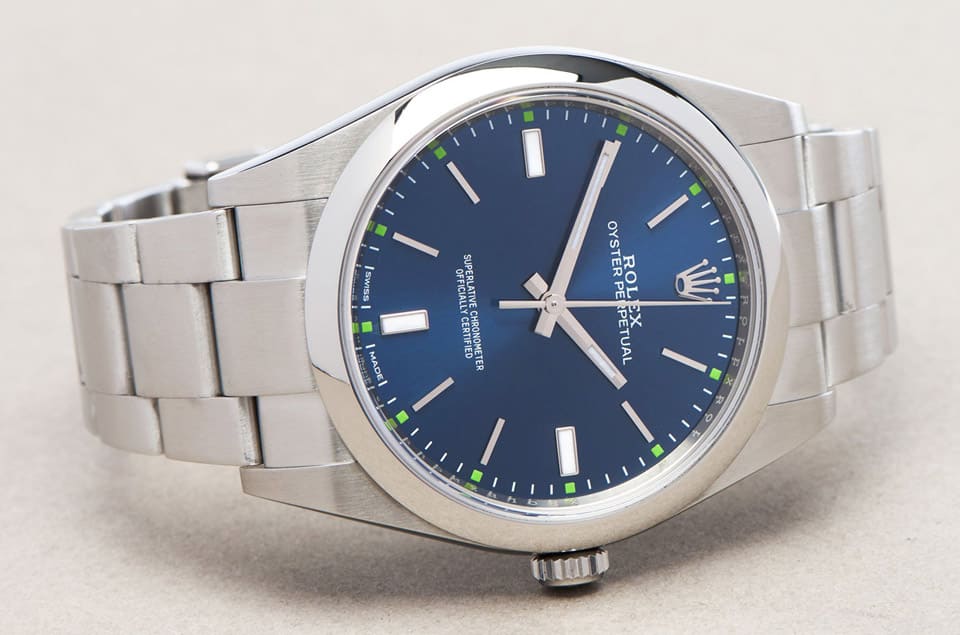 Oyster Perpetual原本就是勞力士入門且又好入手的款式,但前幾年因為彩色漆面登場衝高了這系列的行情,使得OP的詢問度整個提升。如果對現役Oyster Perpetual的二級市場價格感到不可思議,已經停產的39mm型號114300倒是不錯的替代方案,其中像是藍色面盤就是滿值得考慮的選擇,它的時標頂端帶有綠色方塊點綴,價格約20~25萬台幣便可以入手。