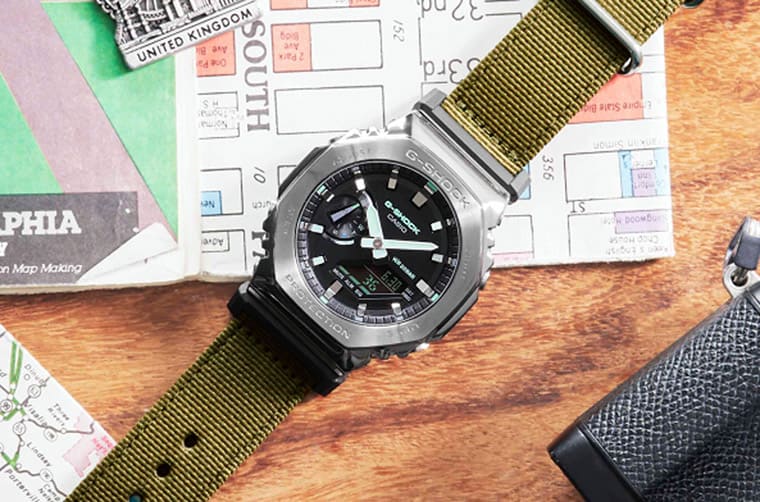 ▲G-SHOCK以GM-2100系列為基礎,延伸出配置布質編織錶帶的新成員Utility Metal Covered系列。