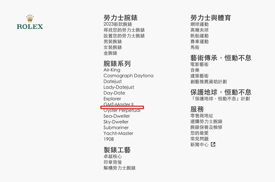 ▲目前勞力士官網目錄中,可見原本Milgauss的位子已經不見(圖中紅框處),代表系列停產走入歷史。