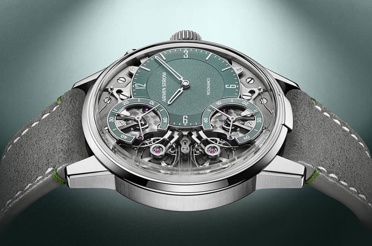 ARMIN STROM開發出一種「共震離合器彈簧」,並於2016年正式推出市面,這種裝置的特色在於以一枚彎曲的特殊造型彈簧直接連接擺輪游絲,使得兩組擺輪能藉此達到共震效應,當手錶正常運作時,只見兩組擒縱系統同時擺動,聯繫兩者的特殊造型彈簧也會左右橫移產生共震,隨時修正擺輪的規律維持同步,此時上面那組小秒針會逆時針轉動、下面那組則是順時針轉動,形成相當華麗壯觀的視覺效果。