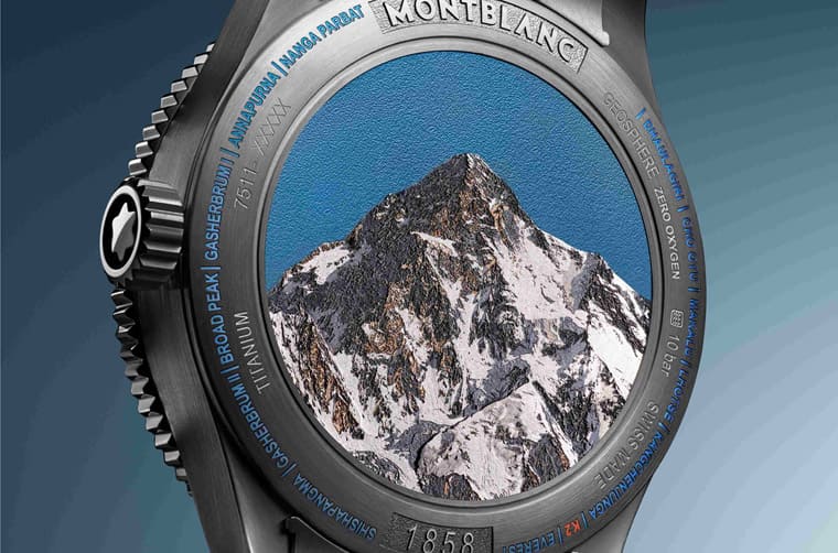 1858系列Geosphere世界時間零氧手錶The 8000蘊含向萬寶龍Mark Maker——傳奇登山家Reinhold Messner致敬的意義(全球第一位征服世界全部14座高峰之人)。手錶面盤仍有深灰色冰川圖案,另外在12點與6點方向設置兩枚半球體的地球儀、24小時刻度與晝夜指示裝置,加上9點方向又還有兩地時間顯示小錶盤,錶款一錶在手可以快速洞察全球各地的當前時刻。手錶底蓋以3D雷射鐫刻出Reinhold Messner欽點的世界第二高峰K2峰輪廓,這是被登山家認為攀登難度最高的終極目標,Reinhold Messner於1979年首度登上K2峰山頂,他在那短暫停留享受登高望遠的滿足感,腦海中深深烙印當下的畫面,經由3D雷射技術,讓K2鋒的美景也被定格在錶背上供佩戴者肆意欣賞。