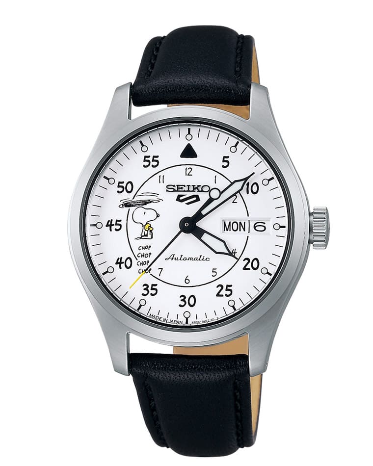SEIKO x 《Peanuts》聯名錶以5 Sports系列兩大支線SKX與Mid-Field為基礎,分別呈現SRPK25K1和SRK27K1兩款作品,兩只錶的全球限量數皆為6500只,不過台灣分到的配額則稍有數量上的差異。提到《Peanuts》,最知名的角色非主角史努比(Snoopy)莫屬,因此SEIKO一方面用黑白漫畫風格設計聯名錶,同時兩款錶也都有著史努比這個共通元素。