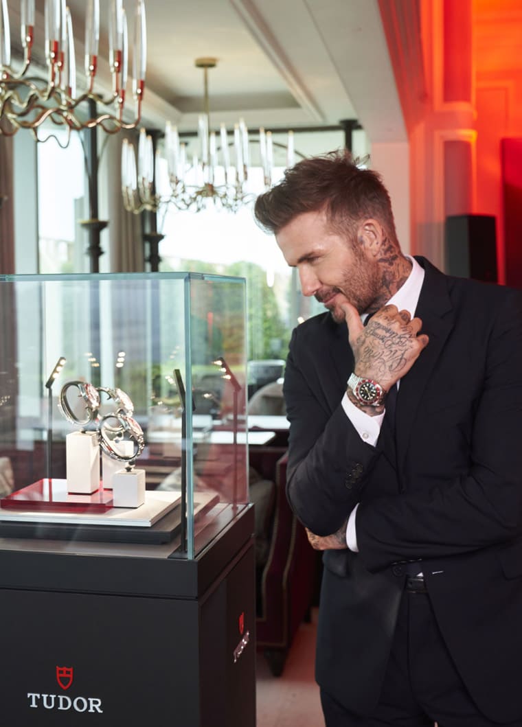 ▲貝克漢與在場嘉賓共同欣賞品牌展示的各式新錶,其中他手上也戴了一只帝舵2023年的話題新作。