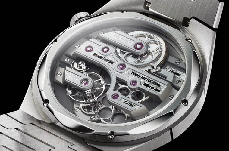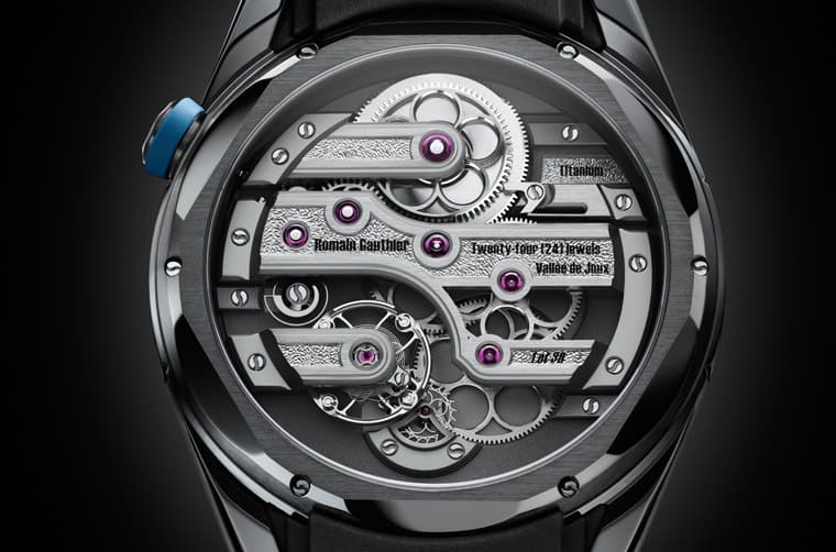 Titanium Edition 4和Titanium Edition Bracelet搭載的手上鍊機芯具有停秒功能,Romain Gauthier選擇用蝸型齒輪來停止擺輪。每當佩戴者拉出錶冠時,蝸型齒輪會接觸並停止擺輪;當錶冠被推回時,蝸型齒輪會轉動,運用齒輪寬度為擺輪提供動力,藉此助擺輪恢復運作,講究的設計讓基本的小三針也能充滿賞玩價值。