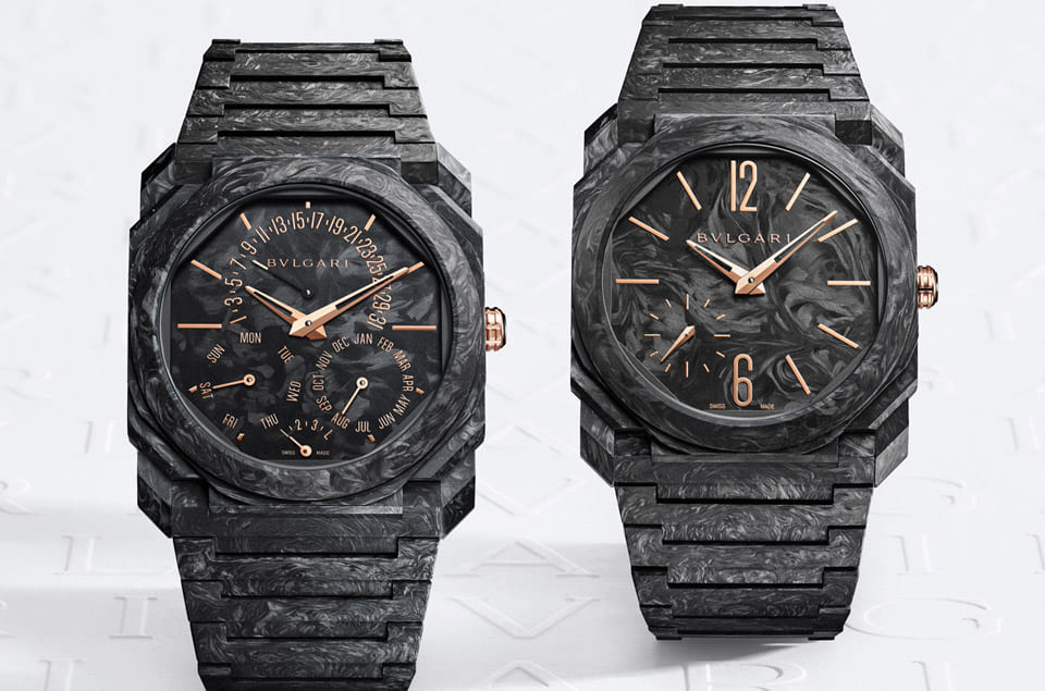 寶格麗近期從Octo Finissimo超薄家族中選擇曾在2017年寫下最薄自動錶和2021年締造最薄萬年曆手錶的兩款作品——Octo Finissimo Automatic和Octo Finissimo Perpetual Calendar作為系列首見錶殼材質登場的舞台。