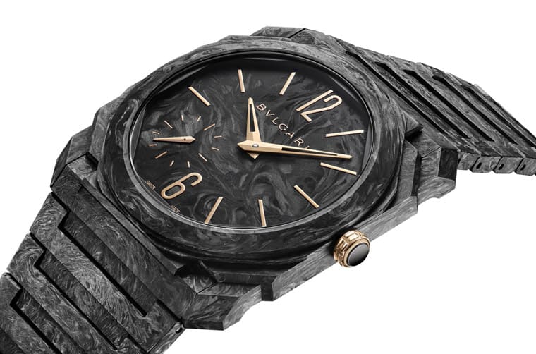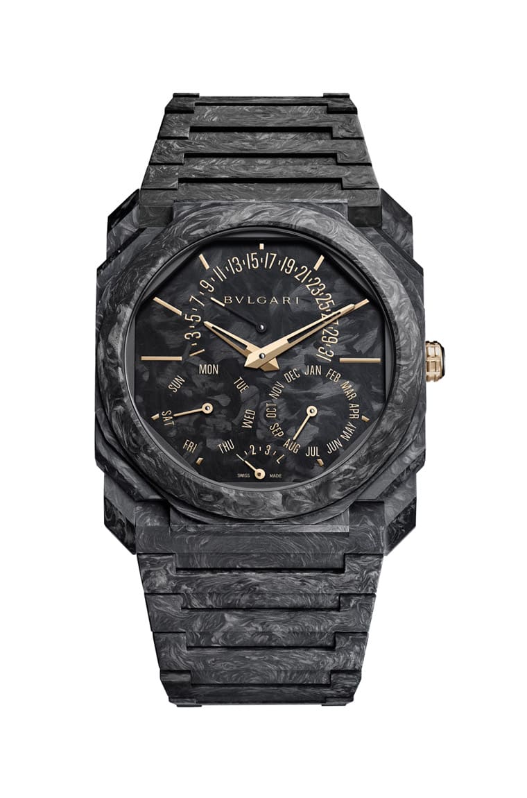 ▲寶格麗歷年曾用不同材質製作Octo Finissimo超薄手錶,2023年品牌再添加先進的鍛造碳材質。