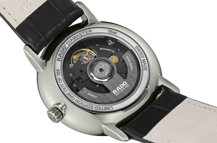 DiaMaster Thinline鑽霸系列金屬陶瓷超薄自動限量錶搭載的R766機芯在透明底蓋下可以看得清楚,機芯背面的零件多數都鍍成黑色,而自動盤也刻意做成船錨造型,並加上日內瓦波紋修飾,在小地方展現進階的製錶工藝讓人有驚喜感,這枚機芯的動力儲存達72小時,日常佩戴綽綽有餘。