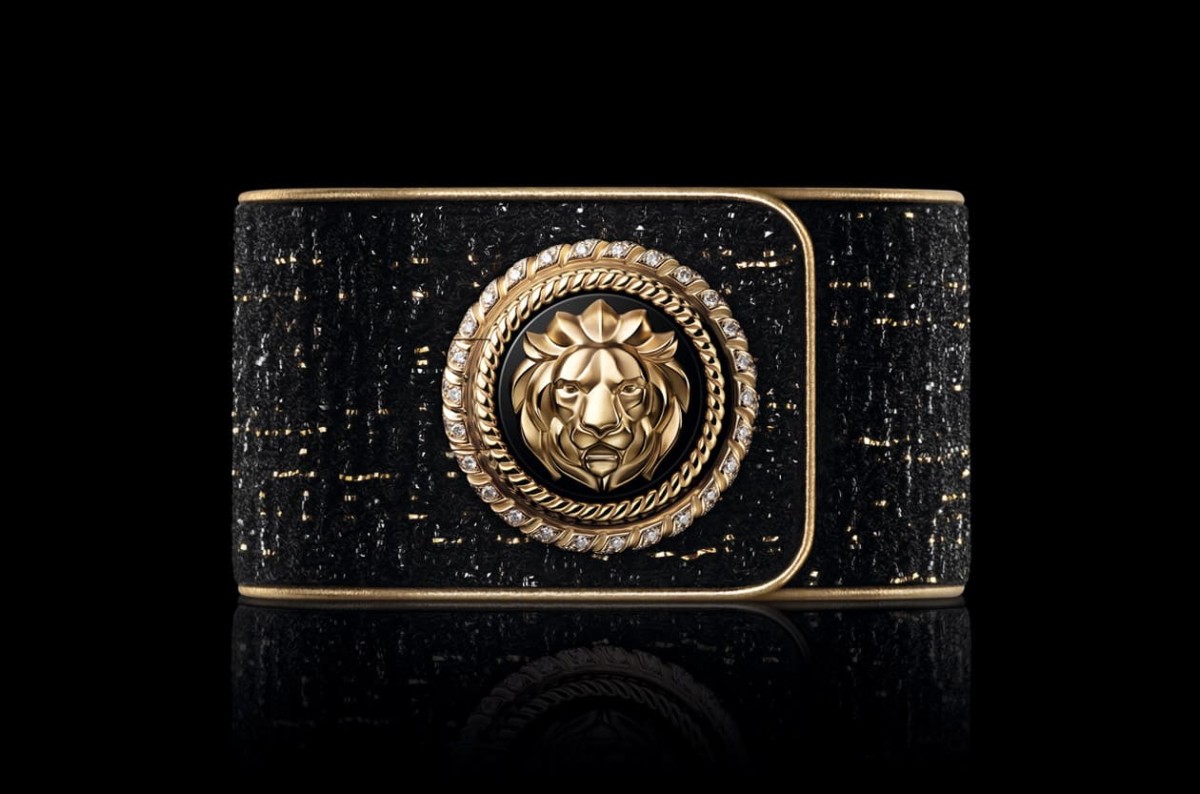 以香奈兒女士得意傑作——小黑外套(Little Black Jacket)為靈感,Mademoiselle Privé鈕扣腕錶猶如延伸外套的袖口,將之轉化為能顯示時間的腕錶形態。品牌費時一年半研發出一種專利開闔機制,得以同時用鈕扣開啟錶帶及鈕扣錶蓋,鈕扣本身利用金雕、鑽石鑲嵌等工藝結合各種富含品牌意象的符碼,例如氣勢非凡的獅首造型,除了獅子的鬃毛、眼神生動逼真,香奈兒也額外運用黑色瑪瑙、鑽石等元素裝點,呈現細緻奢華的美感。