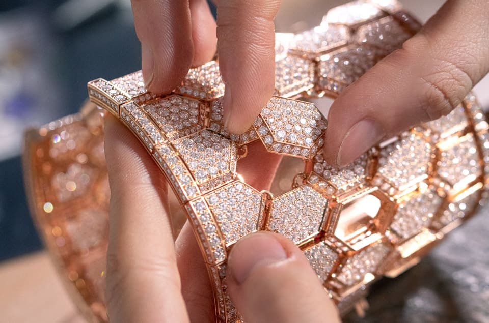為了能夠實現Serpenti Misteriosi Cleopatra頂級珠寶神祕腕錶的設計,寶格麗的珠寶工藝團隊前後共花了470個工時用於鑲嵌數量龐大的寶石,腕錶的外型乍看簡約俐落,實際上卻充滿細節與巧思,將象徵智慧、重生與生命力的靈蛇主題整合進手鐲式外型,同時腕錶表面的寶石從選材、切割到鑲嵌無一不需要花費大量時間才能把品牌的設計兌現,連續兩年都拿到了GPHG最佳珠寶錶獎,寶格麗透過得獎作品再度將「彩寶藝術大師」的美稱演繹得淋漓盡致。