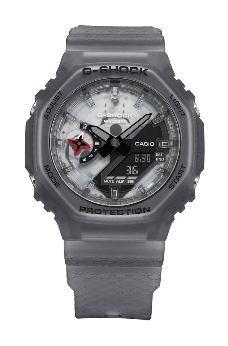 另外以忍術「火遁之術」為靈感的是GA-2100NNJ,它配置了熱壓印網格半透明灰色錶帶和錶圈,看起來就像火球製造出的濃煙,通常忍者會使用火焰(例如點燃稻草或木材、發射火箭矢等)來轉移敵人注意力,達到隱匿自身或製造干擾的效果。