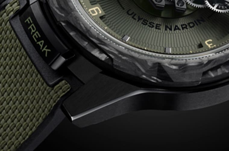 Freak [One Ops]採用黑色DLC鈦金屬錶殼,錶徑達44mm佩戴在手相當醒目。雅典錶最另替手錶配置Carbonium®碳正離子材質錶圈,這種材質目前可見於新一代飛機的機身和機翼等零件,由於品牌堅持使用飛機零件的邊角料製成,所以這枚錶圈零件在製作過程中能比其他碳複合材質降低40%對環境的影響,達到更環保的目標。而得力於碳正離子材質表面的不規則紋理,主要因為其在成形過程中是由7微米的碳纖維絲在高溫高壓條件下經由有機方式打造而成,故每一只Freak [One Ops]的錶圈紋路都不可能完全一樣,形成同中求異的鮮明個性。