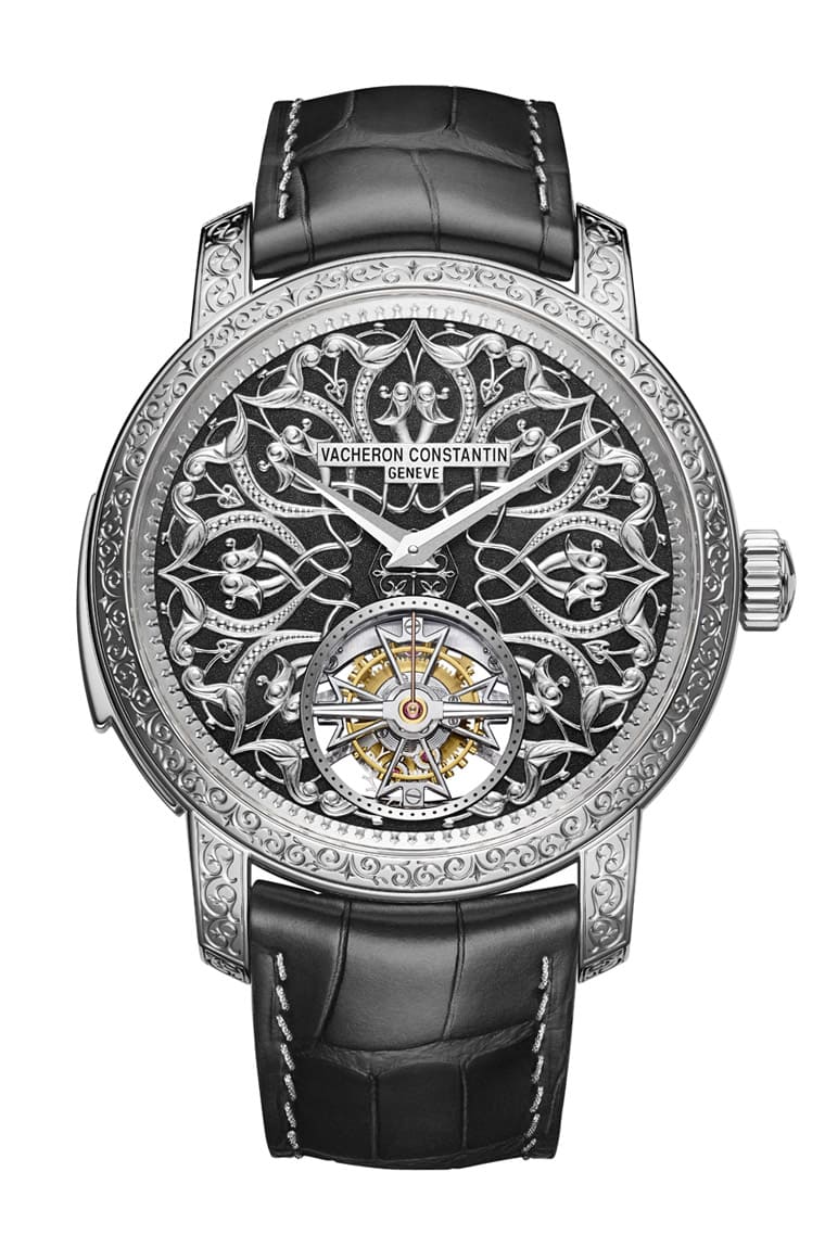 兩款錶都屬於Les Cabinotiers閣樓工匠”Récits de Voyages”主題時計,而且它們都僅各限量一只,超級稀有之餘,也象徵品牌放眼世界的開拓精神。手錶錶殼直徑皆為44毫米,其中一款以白金製成,另一款則是玫瑰金打造,它們的設計靈感分別來自阿布達比謝赫扎耶德大清真寺的裝飾圖紋,以及紐約克萊斯勒大廈的建築輪廓。江詩丹頓在面盤上以雕刻工藝向中東、美國自19世紀初延續至今的深厚淵源致敬,傳神展現二者藝術文化的精髓,品牌旗下的雕刻大師以手工替手錶雕飾出伊斯蘭風情濃厚的「蔓藤花紋」藝術紋理,以及別出心裁地融合了細木鑲嵌、寶石鑲嵌和手工雕刻工藝的裝飾藝術詮釋克萊斯勒大廈代表的現代都會風情。