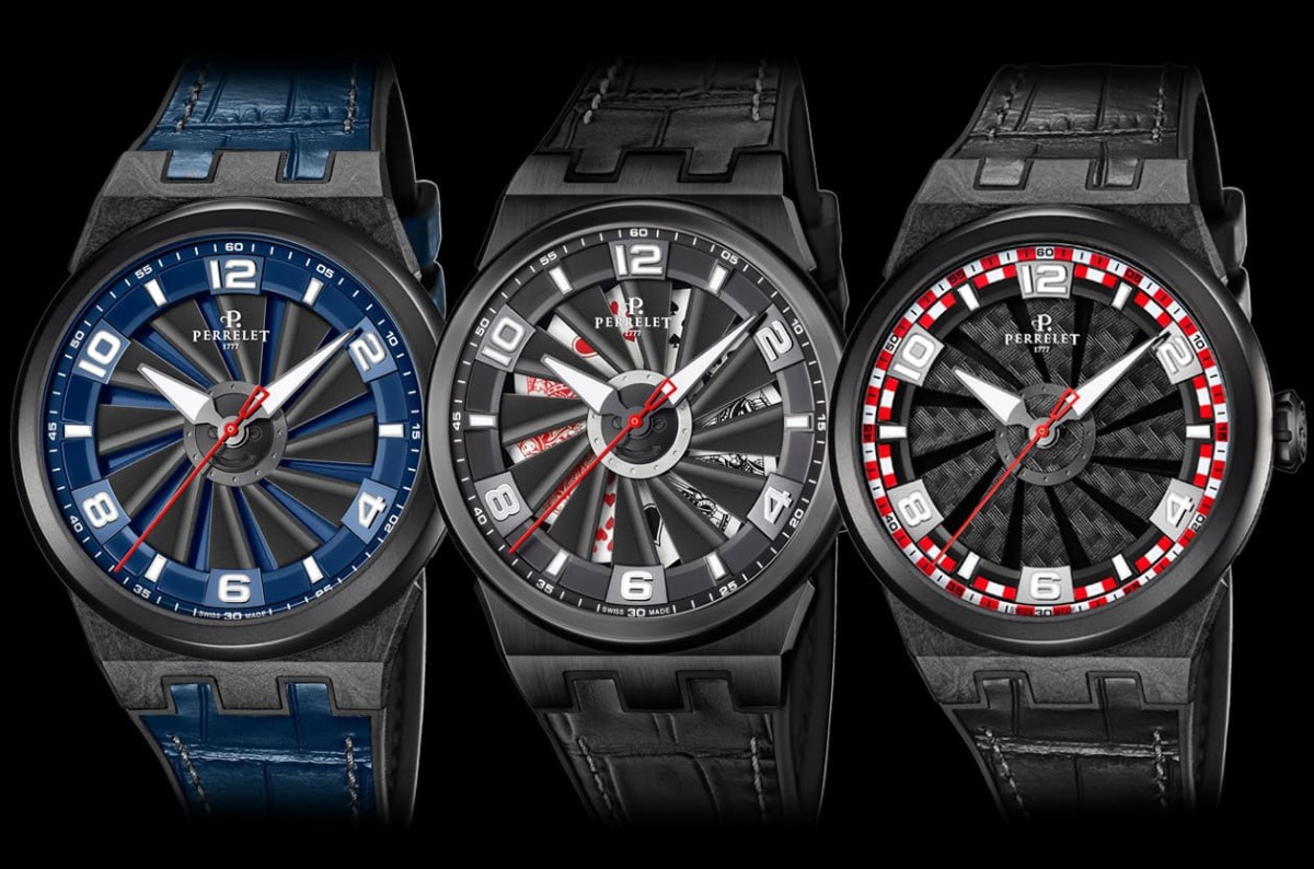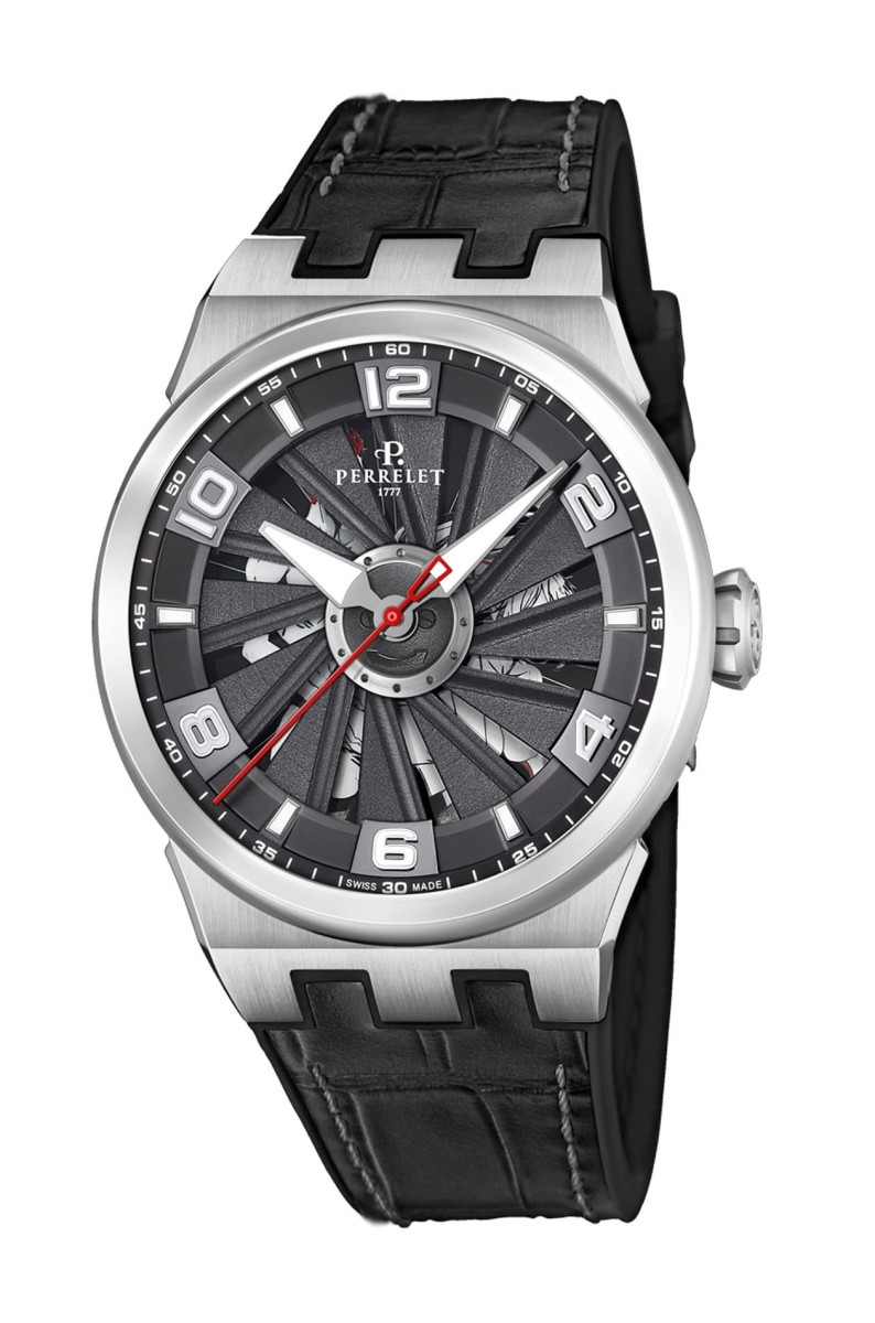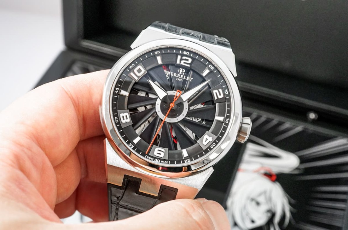 Turbine系列承襲Dipteros腕錶的雙自動盤概念,PERRELET另外結合源自渦輪引擎的靈感,塑造出腕錶面盤特有的「旋風技術」機制,不過Turbine系列的旋風技術機制不具上鍊功效,主要作用在於實踐大膽的視覺美學、建立產品辨識度,同時帶給佩戴者更豐富的讀時樂趣。Turbine系列發展至今,旋風技術機制都是腕錶最重要的特徵,無論具備的是基本的大三針功能、進階的兩地時間顯示、計時碼錶功能或複雜的陀飛輪裝置等,面盤上隨著手腕活動而靈活轉動的旋風機制就像是腕錶的錶殼、面盤、指針等必備元素般不可或缺。