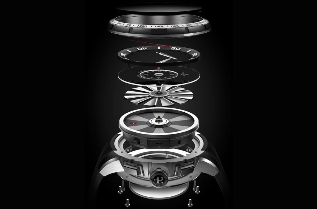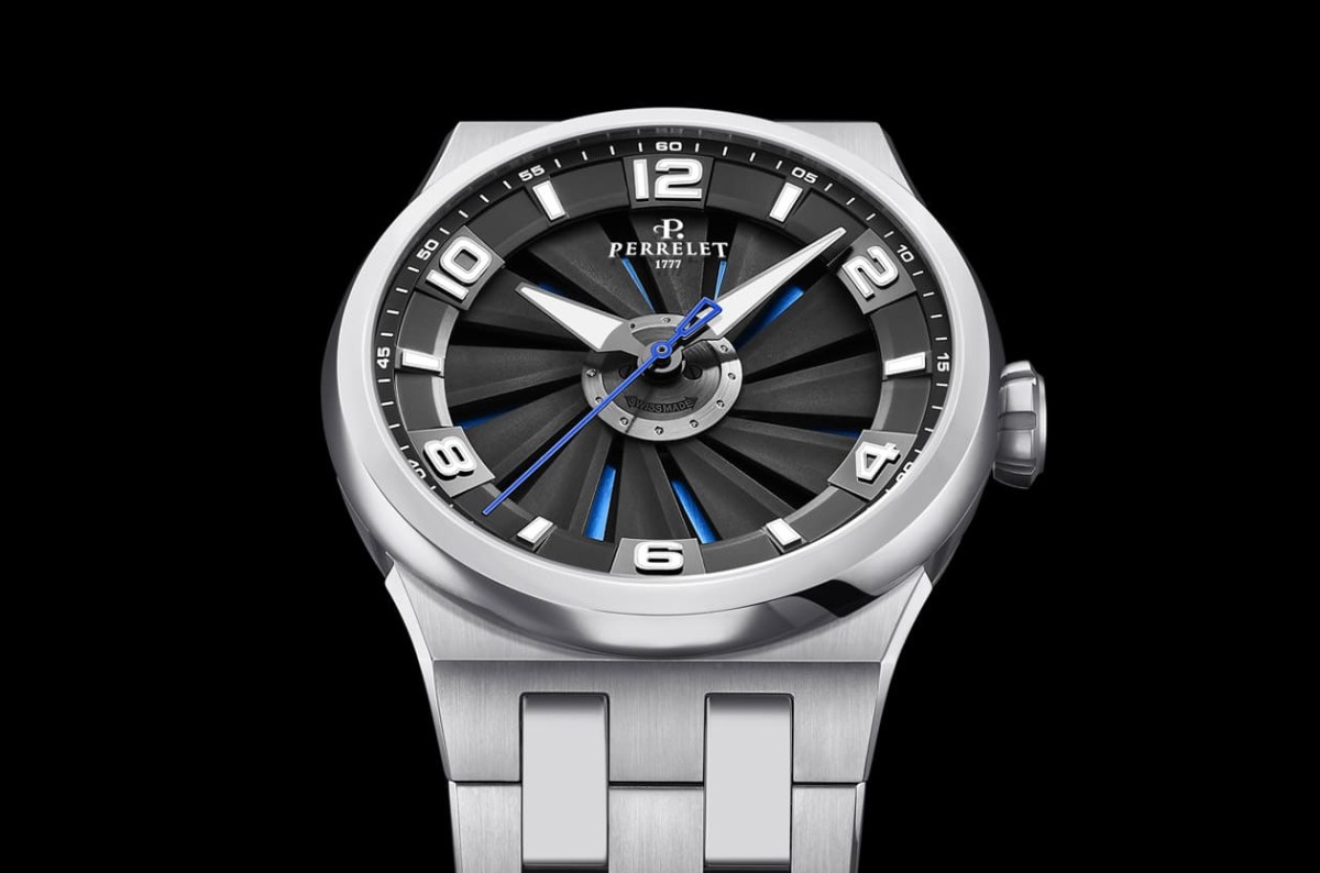 ▲Turbine系列是PERRELET招牌作品,面盤的旋風技術機制由下層面盤、渦輪葉片以及上層面盤的時標刻度環組成,既富有原創性也展現迷人視覺效果。