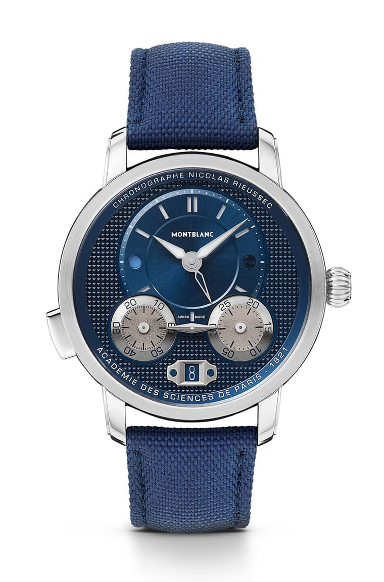 品牌此次在偏心錶盤設置鏤空時標、太妃式指針,而兩地時間指針也使用鏤空處理與所在地時間的時針做出區隔,細看面盤12點和6點方向分別刻印有”Chronographe Nicolas Rieussec”和”Académie des Sciences de Paris”(巴黎科學院)字樣,後者再度與Nicolas Rieussec當初的發明遙相呼應。