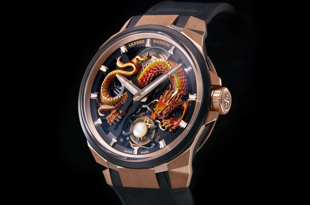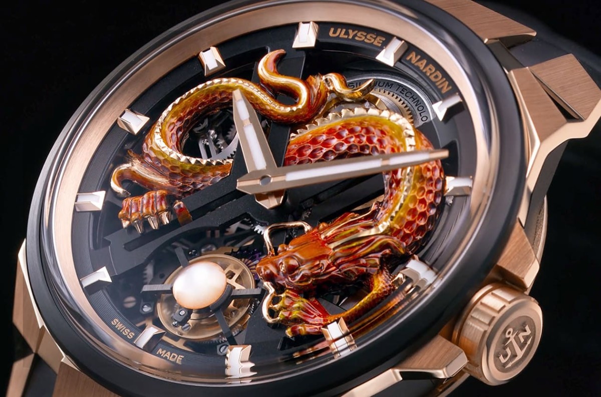 過去12年來,ULYSSE NARDIN雅典錶在每年農曆過年前都會應景地推出鎏金系列內填琺瑯生肖錶,品牌在2023年已經完成了整組的12生肖,展望2024年品牌似乎打算延續他們創作生肖錶的傳統,然而這次不再以鎏金系列為基礎,雅典錶為了2024年甲辰龍年所打造的作品是風格更現代、設計也更複雜的Blast陀飛輪金龍手錶,隨之而來的生肖圖案也從以往的平面形式演進為立體形式,視覺上的驚豔度與震撼力相較品牌過往的生肖錶可說猶有過之。