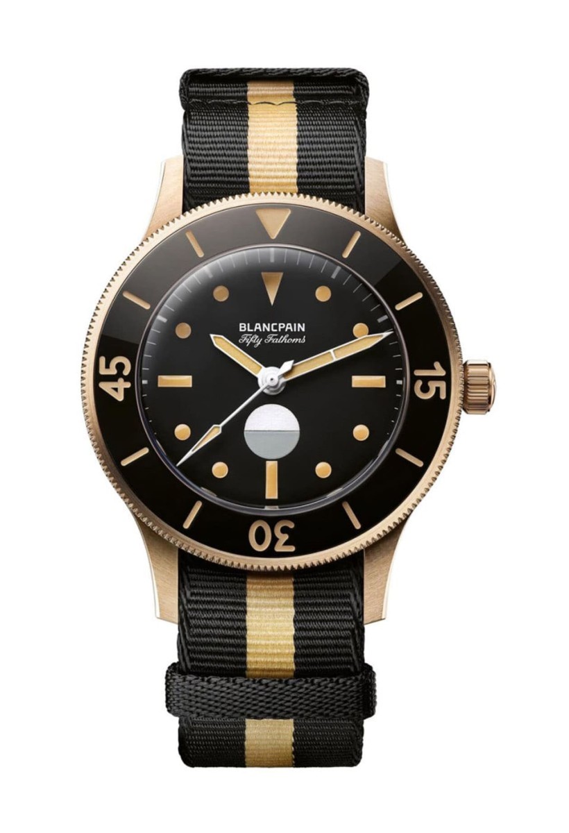 寶珀的Fifty Fathoms五十噚手錶1953年即已問世,是最早的專業潛水錶之ㄧ,手錶開發完成之初,當時品牌總裁Jean-Jacques Fiechter還實地戴著手錶去潛水,由此證明五十噚真的可以在水下環境中正常運作。五十噚系列在發展過程中曾被法國、美國與德國海軍採用,可見其潛水機能的真材實料,而它所具備的設計特徵如“O”形密封墊圈、單向旋轉錶圈、強調高對比感的面盤配色等,日後也成為了錶壇區隔專業潛水錶的必備要件。目前我們對五十噚的印象主要源自寶珀在2007年推出的款式,設計與初期五十噚似曾相識之餘,還將錶圈改成藍寶石材質,非常有特色;品牌後來又在2013年增加了同樣奠基於早期潛水錶的五十噚Bathyscaphe,設計與嫡系的五十噚各有千秋,不過寶珀潛水錶該有的優點它也一樣不少。