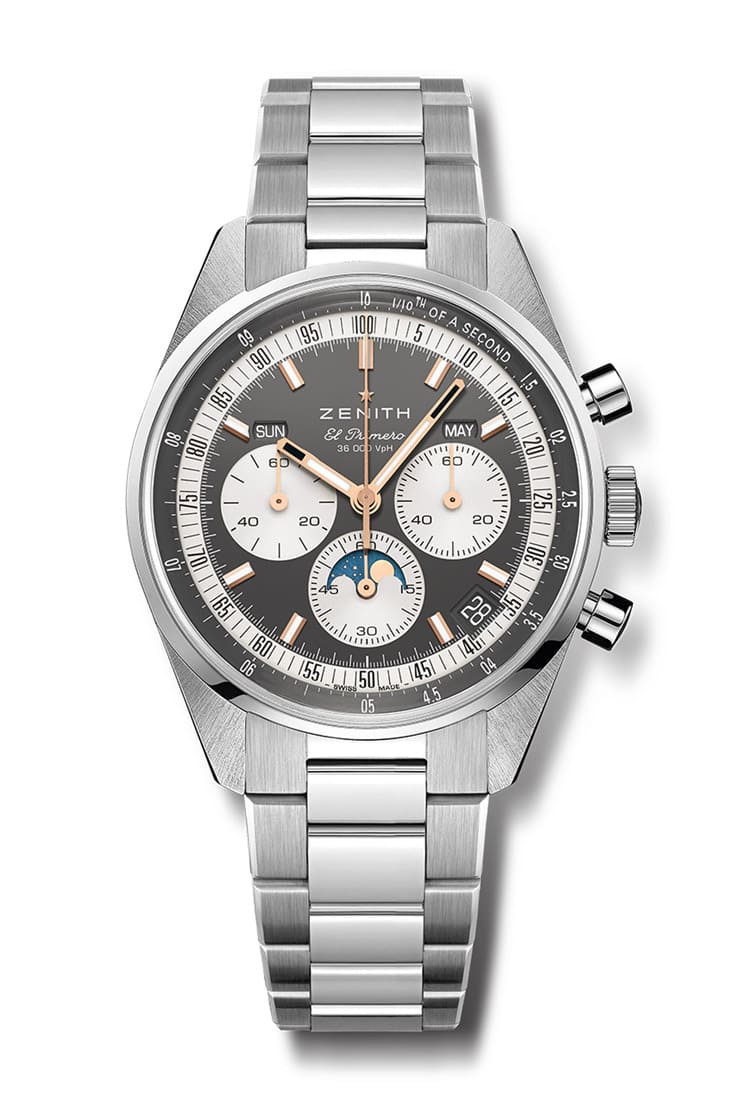 ▲Chronomaster Original回溯El Primero家族歷史,再度推出蘊含全日曆功能的計時碼錶新作,面盤配色頗為多元,包含深受市場喜愛的銀白色熊貓面。