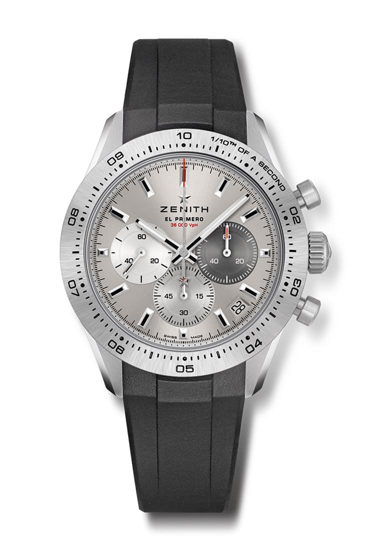 不鏽鋼、陶瓷材質/El Primero 3600自動上鍊機芯/時、分、小秒、日期顯示/計時碼錶功能/藍寶石水晶鏡面、透明底蓋/防水100米/錶徑41mm/參考價:NT$ 378,500(膠帶)、NT$ 396,700(鍊帶)