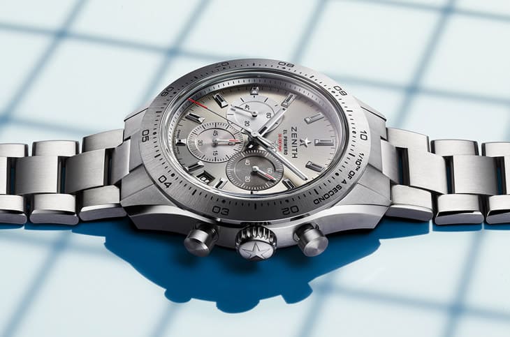 近期真力時為了支持品牌摯友、法國網球教練兼新世代「終極網球賽」創辦人Patrick Mouratoglou,因而打造出適合網球與各項運動選手佩戴的Chronomaster Sport Titanium鈦金屬腕錶。Chronomaster系列過去僅於少數專賣店限量的復刻款式中採用不鏽鋼材質,因此這款作品也是真力時首度以鈦金屬製作的Chronomaster Sport計時碼錶。鈦金屬因為輕量、親膚性、抗腐蝕性與抗磁性佳而被視為與運動錶天作之合般的元素。Chronomaster Sport Titanium由錶殼、鍊帶到錶冠與計時按把皆以鈦金屬打造,為了突顯同款式首度以鈦金屬之姿亮相,品牌也直接沿用鈦金屬製作錶圈,同時應用緞面打磨前述零件以強調其與精鋼材質不盡相同的灰色調。以搭配鈦金屬鍊帶的款式為例,其整體重量較精鋼錶殼鍊帶的同款作品輕盈30%之多,佩戴在手上能讓手腕活動更靈活自在。腕錶面盤呈現電鍍鎳灰色,著名的三色小錶盤分別飾以碳灰色、灰色和銀色加以區隔,其中計時指針都會塗上紅色以彰顯其與走時功能的有別的屬性。真力時同時替腕錶推出黑色橡膠錶帶款式,其以的FKM橡膠製成,不僅柔軟舒適,也能夠抵禦高溫或刺激性化學物質,搭配鈦金屬錶殼後輕盈程度再升級,讓人體驗到鈦金屬材質引人入勝的魔力。