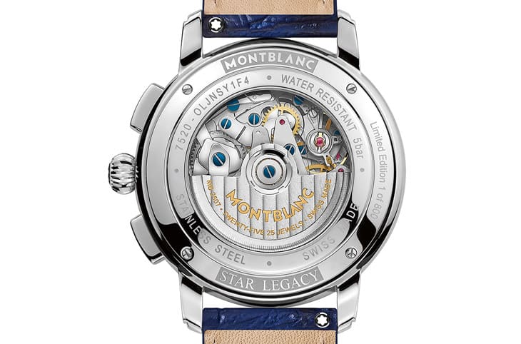 ▲明星傳承系列日期顯示自動錶限量款800搭載MB 24.17自動機芯,動力儲存為38小時。