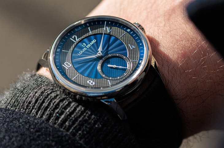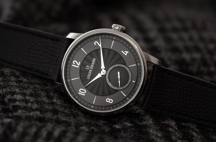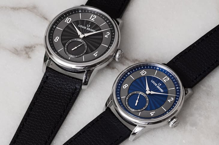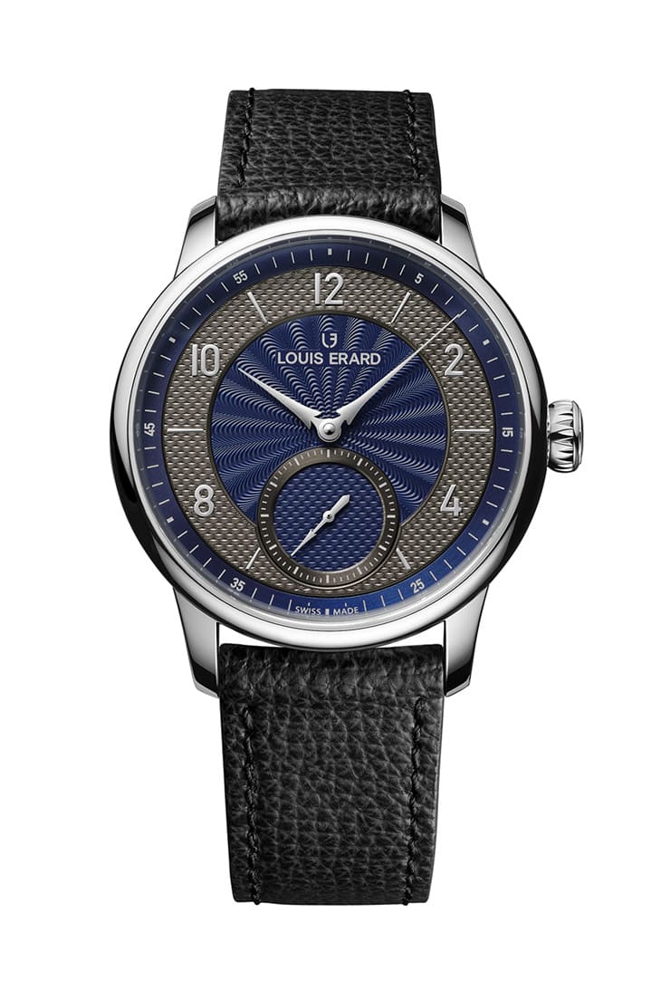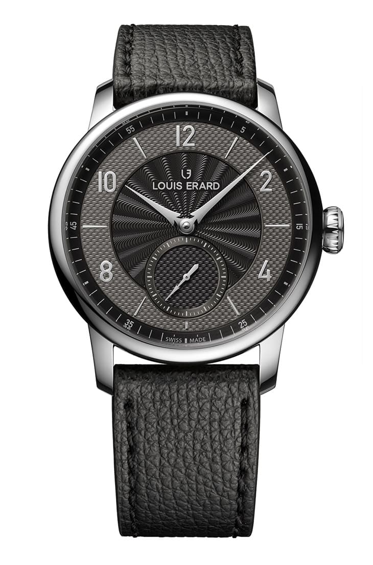 新款Excellence機刻雕花小三針都是用不鏽鋼材質製作錶殼,並且也都是配置黑色小牛皮錶帶,至於兩只錶的設計重心也同樣有高度一致性,LOUIS ERARD以盛行於18世紀高級懷錶、包括Abraham-Louis Breguet、Urban Jürgensen等鐘錶巨匠都十分喜歡且擅長的機刻雕花工藝,替手錶妝點門面,使其得以展現比一般小三針手錶更細膩的面盤質感與賞心悅目的視覺美感。