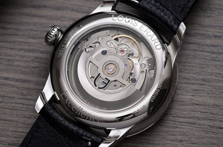 ▲錶背設置透明底蓋,讓人可以一窺內部Sellita機芯的結構,以及LOUIS ERARD特別調整過的裝飾細節。