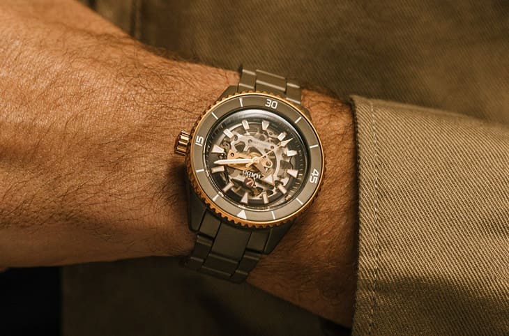▲透明底蓋周圍換上親膚性佳的鈦金屬零件,讓人戴得更舒適安心,而底蓋內部的機芯蘊含Nivachron™游絲,動力儲存達80小時,品質與實用性都不在話下。