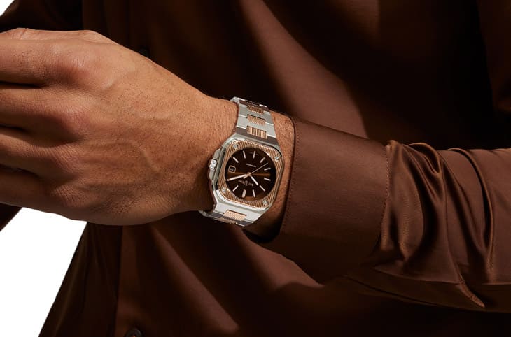▲BELL & ROSS受到1970~1980年代金鋼手錶風潮啟發,打造出不鏽鋼搭配玫瑰金的雙色BR 05 Artline。