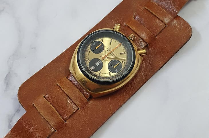 由於8110A Bullhead是停產的古董錶,現在想要買到原版的機會已不高,不過"Bullhead"的品牌官方名稱其實是8110A Challenge Timer,所以想要找這款錶也可以擴及整個系列來下手,當時CITIZEN推出這款錶徑41x38mm的作品共有五主版本,其中有一個版本是不鏽鋼材質,其他多數版本則是普通金屬搭配不鏽鋼底蓋,當中有一款是外觀鍍黑處理,也有布萊德彼特戴的Bullhead那種鍍金版本,最後一個版本採用拉絲處理,錶殼據知可能是鎳合金。8110A Challenge Timer搭載8110A機芯,震頻28,800vph、動力儲存40小時(它可不是石英錶),是一款具有導柱輪和垂直離合機制的計時功能,在當時算是水準還不錯的一款作品。品牌迄今還沒正式推出8110A Challenge Timer的復刻版,可是2021年時CITIZEN曾和日本潮牌Beams合作打造一系列石英版本的Bullhead手錶,其中也有金色的版本。可是想戴出和布萊德彼特相同風格的絕佳選擇還是找古董錶更加,這款錶在二級市場可以找到的價格約在3~4萬左右,雖然不算特別便宜,可是戴上手絕對有型。