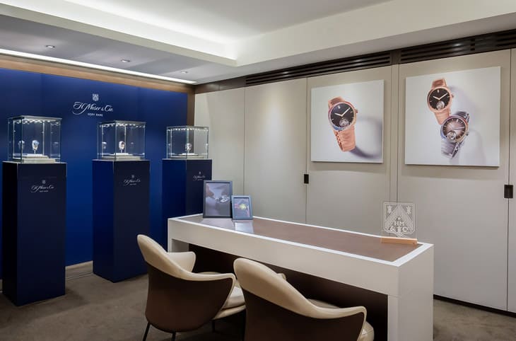 ▲寶鴻堂鐘表台北旗艦店現正展出亨利慕時2024新品鑑賞展,藍色櫥窗充滿濃濃的品牌個性。