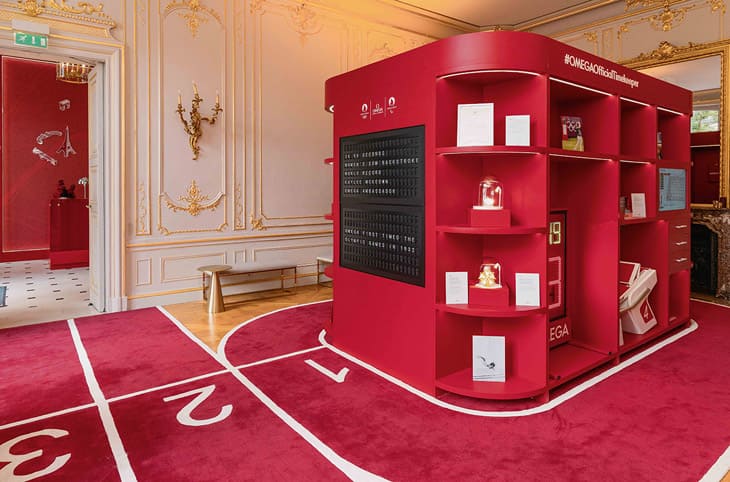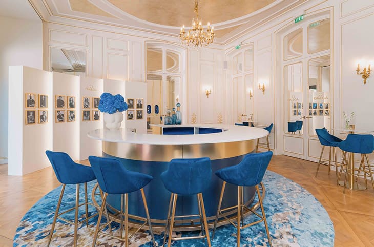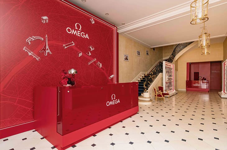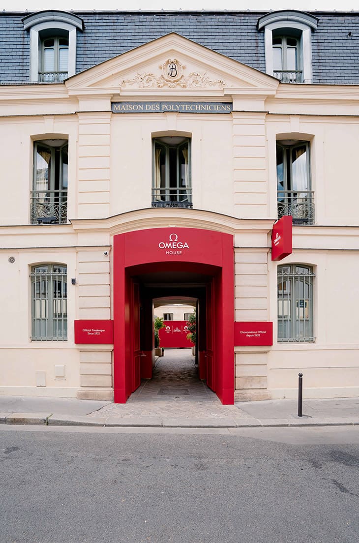 OMEGA House Paris位於Maison des Polytechniciens的Hôtel de Poulpry。參觀者一進入時,首先會踏入The Courtyard,這是一個可以讓人暫時遠離巴黎社區喧囂的雅緻戶外空間。接著參觀者會經過The Reception,此處展示著品牌在奧運會和怕運會上的歷史全紀錄,也就是從1932年以來的各屆亮點。