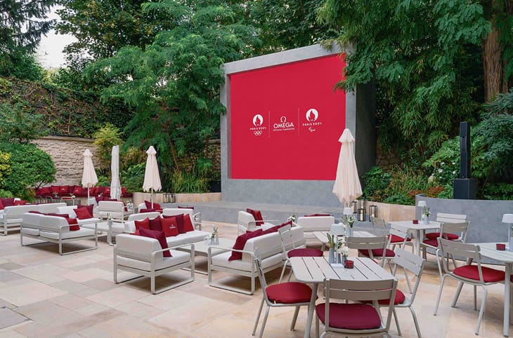 OMEGA House Paris後方還有第二個戶外區域名為"The Garden",這裡設有舒適座位區與大螢幕,參觀者可以現場觀看運動比賽,感受與奧運項目的密切連結。