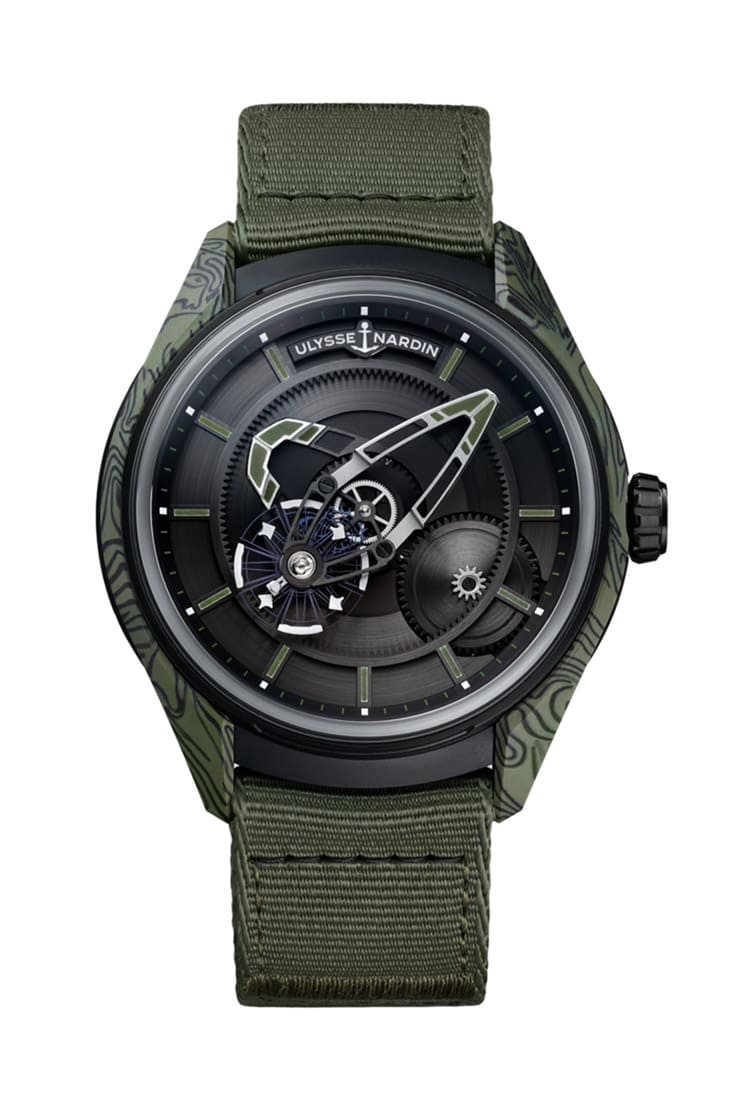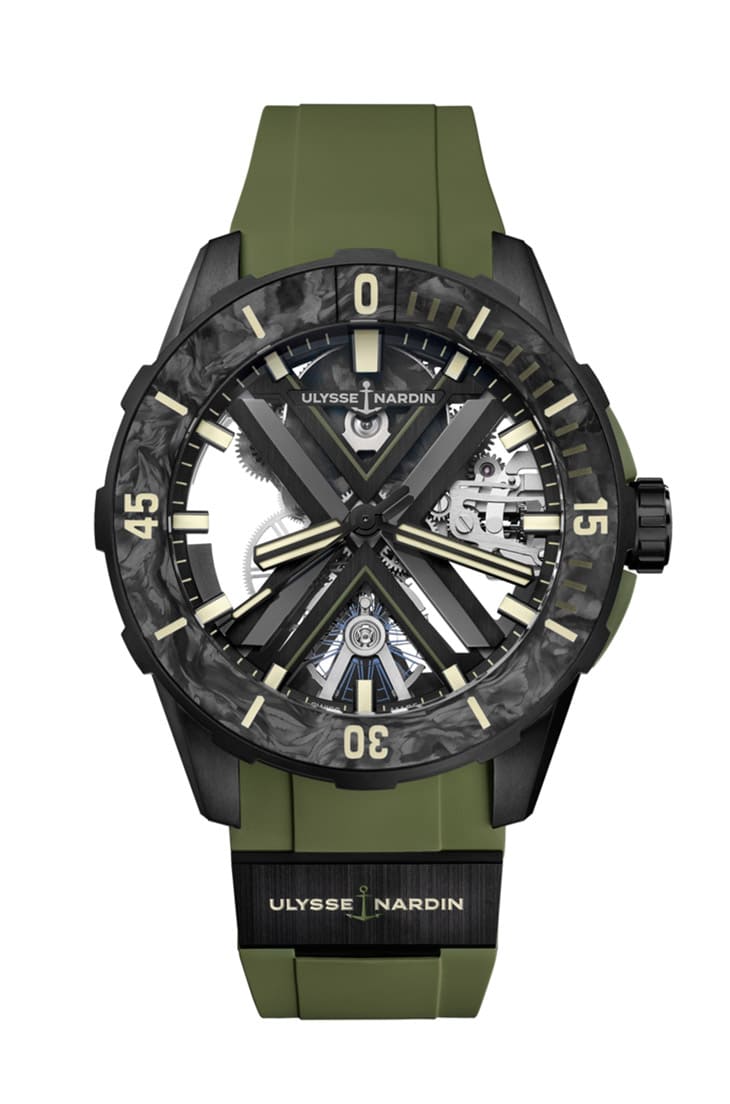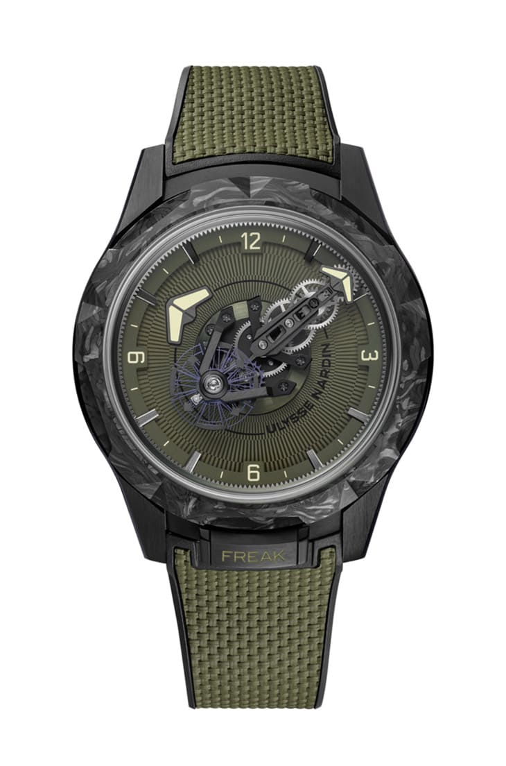 DLC鈦金屬、黑色碳纖維、綠色環氧樹脂材質/UN-230自動上鍊機芯/時、分顯示/卡羅素裝置/藍寶石水晶鏡面/防水50米/錶徑43mm/參考價:NT$ 1,031,000