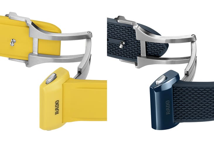 ▲兩款錶的橡膠錶帶都配上與錶殼同色的陶瓷扣面以及不鏽鋼折疊錶扣。