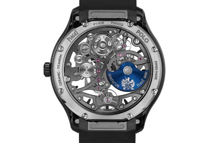 ▲伯爵終於也推出以陶瓷材質製作外部零件的手錶作品,塑造出Polo Skeleton Ceramic的黑色系風格。