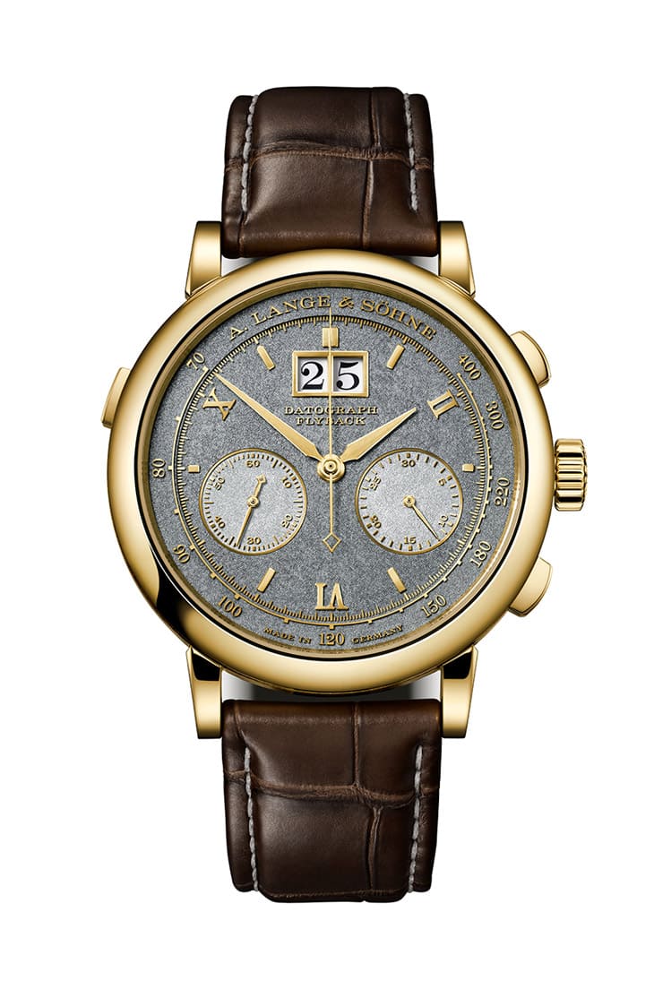 2024年問世的Datograph Handwerkskunst,算一算已經是這個特別系列的第8款作品(前一款是品牌2021年創作的Cabaret Tourbillon Handwerkskunst),不同於前面7款作品,Datograph Handwerkskunst第一次採用黃金材質製作,錶殼41mm、厚度13.1mm展現出手錶的大器紮實感,品牌替其配置棕色鱷魚皮錶帶,將朗格手錶予人的穩重內斂風格進一步強化。