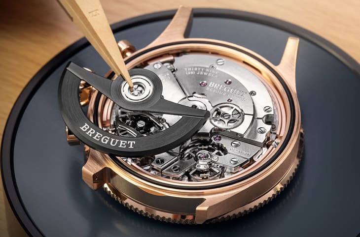 ▲錶背可一探728自動機芯的複雜結構,其由350枚零件組成,寶璣特別將自動盤和導柱輪輪鍍黑,讓人感受到品牌設計的講究與巧思。