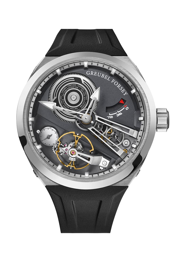 鈦金屬材質/GF09cx手動上鍊機芯/時、分、小秒顯示/30度斜角擺輪裝置/藍寶石水晶鏡面、透明底蓋/防水50米/錶徑41.5mm/限量88只/參考價:NT$ 6,660,000